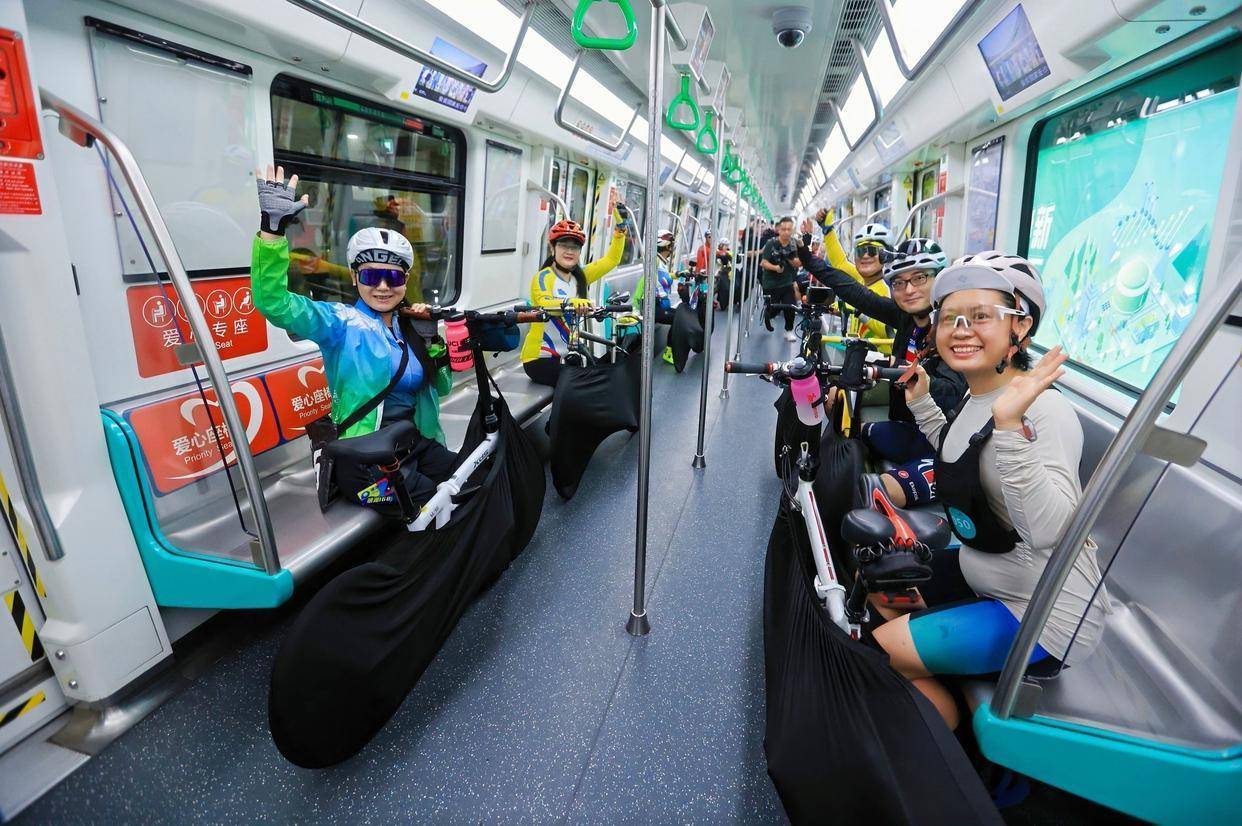 活动当天,百名骑手统一携带打包好的自行车,通过“专用包装、人车同票、预约管理、指定区域”模式,搭乘地铁6号线专列、专属车厢出行。