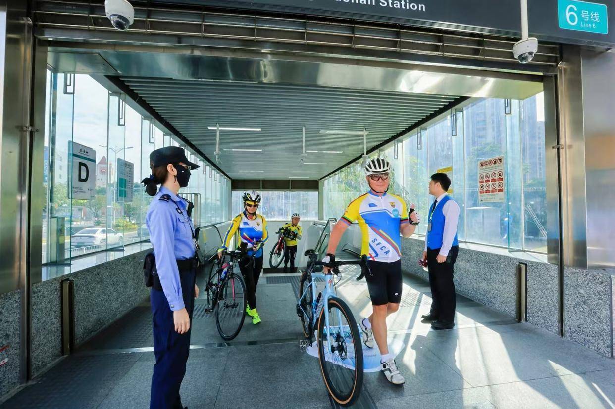 专列自6号线科学馆站启程,途经体育中心站、红山站,最终抵达光明区的光明站与红花山站。全程各站点均安排工作人员引导,确保骑手安全有序进出站,保障活动顺畅进行。